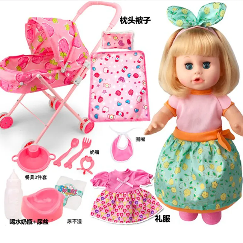BEST QUALITY 32cm Blinking Feeding Drinking water pee talking girl newborn doll model bebe Reborn Baby trolley t