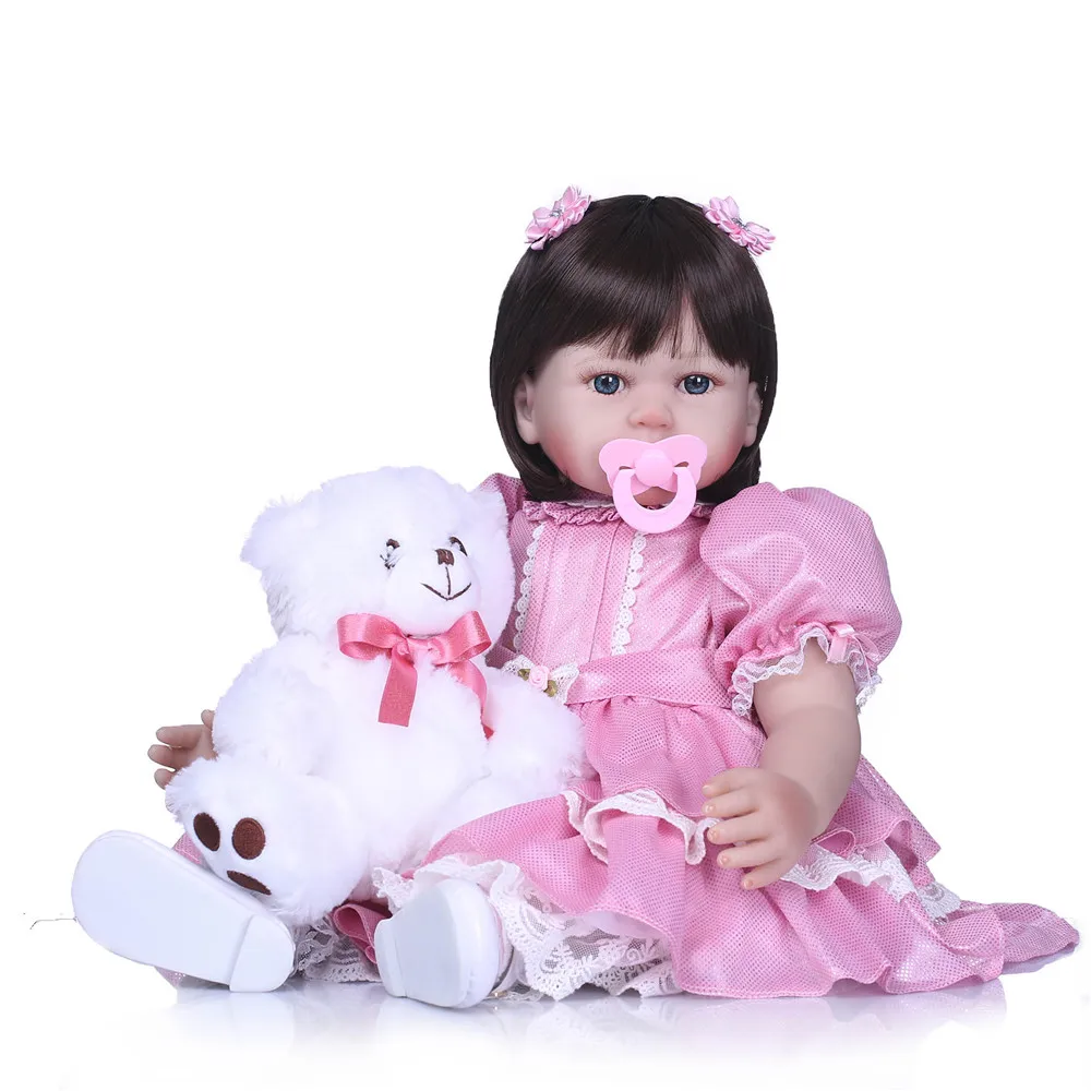 Bebes reborn toddler girl princess dolls 58cm vinyl silicone reborn baby dolls with bear plush chil